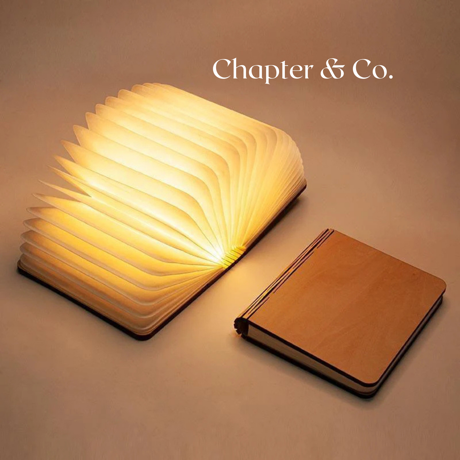 A book-shaped lamp that lights up when opened, combining the enchantment of reading with a gentle, warm light, ideal for creating cozy atmospheres or serving as a distinctive decorative item.